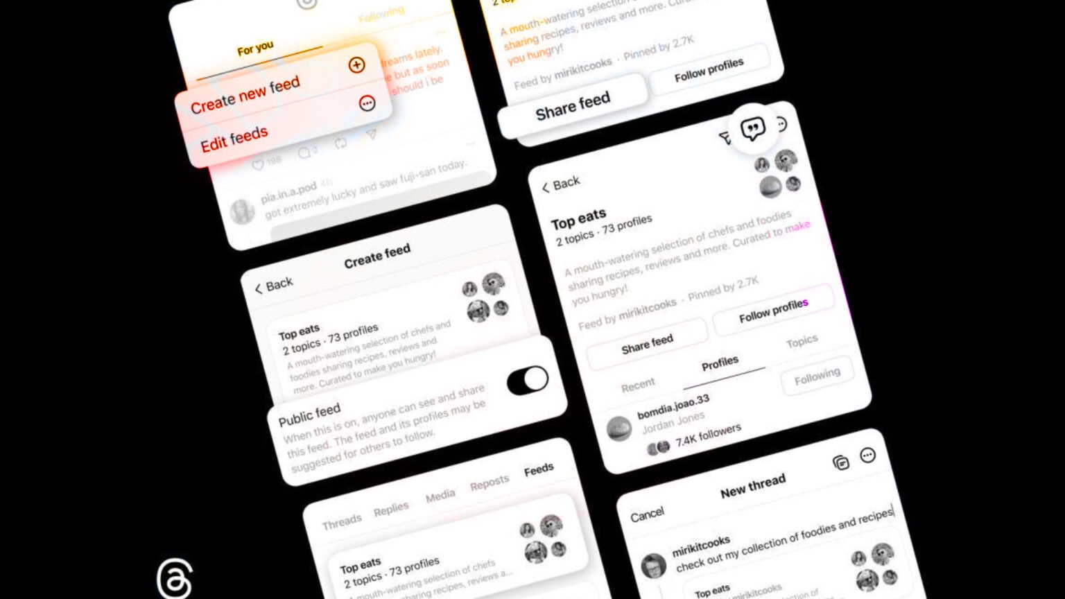 To use Threads’ custom feeds, you’ll first search for a topic to see the latest posts then tap on the three-dot menu and choose “Create New Feed.” You can also customize feeds by adding specific user profiles to a given feed by tapping on the three-dot icon above a user’s profile photo and then adding them to the feed of your choice.